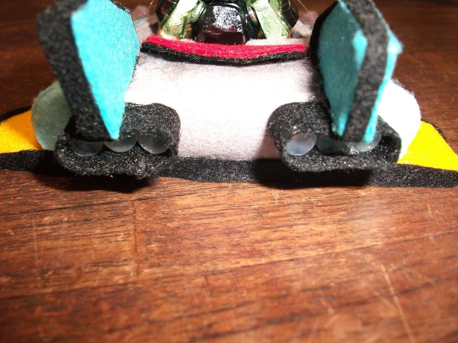 ホットボンドを棒のままカットし、接着剤を付けた後にフェルトを巻いて固定。更にニスを塗ってフェルトを固くしてあります。