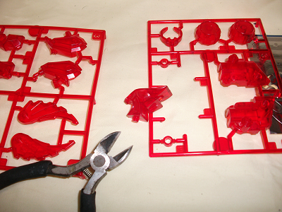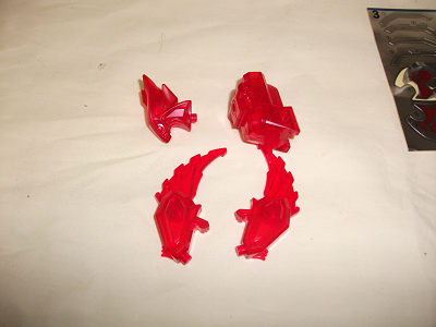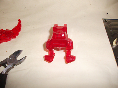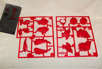 シール1枚+クリアレッドのランナーが2枚、説明書は毎度御馴染みの箱裏印刷。