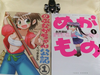 閉店間際の本屋で「めがもの! 1(永井道紀)」と「のぶながちゃん公記1(くりきまる)」を購入~。