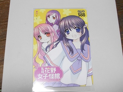 まんがライフMOMO7月号分で送ったアンケートハガキで、私設花野女子怪館のクオカードが当選しました! 初めて当たった! 初めて当たった!!(嬉しい事なので二回言いました)