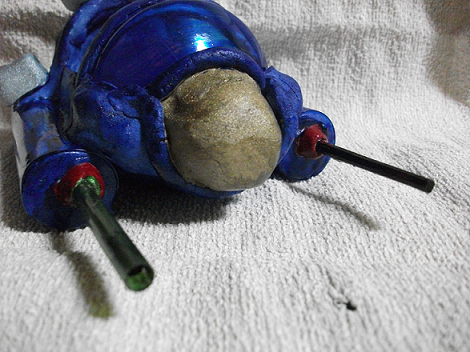 装甲部分みたいに全体的に包むとかだったらまだ良かったんだけど、タンク部やアンテナ部分は、乾いた後で接着剤を使ってます。